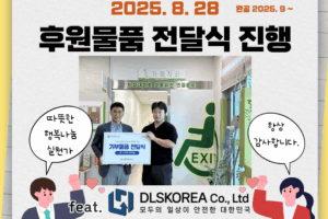 사회 환원사업 진행 당사는 모두의 일상이 안전한 대한민국을 위해, 우리는 함께 길을 만듭니다. 이 사회 환원사업은 재난 상황에서 누구도 소외되지 않도록, 안전취약계층의 생명권을 보장하고 지역사회와 함께하는 지속가능한 안전문화 조성을 목표로 합니다. 더 많은 공간에 안전의 길을 열어줍니다. 장애인과 비장애인이 모두 안심할 수 있는 공간을 위해 함께 만드는 안전한 내일을 만드는 디엘에스코리아입니다.